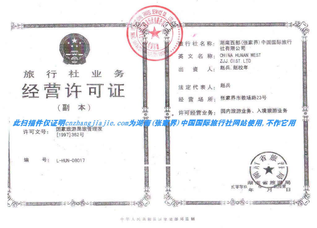 版權(quán)所有:湖南西部(張家界)中國(guó)國(guó)際旅行社有限公司 地址:張家界市華天城鉑金公寓六樓 郵編:427000