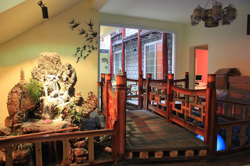 古樸的客房內(nèi),超大陽臺(tái)全景落地窗,是您欣賞沱江風(fēng)光帶首選客棧,兩座百年四合院內(nèi)小橋流水,假山錦鯉,一百三十平米休閑花園別具情調(diào)。紅酒加咖啡的大堂吧、彩色精致的情調(diào)房、古典高雅的臨江觀景房以及大型公共觀景平臺(tái),龍閣的點(diǎn)點(diǎn)滴滴都透著出古城的神韻和幽靜,走進(jìn)龍閣客棧,給您一個(gè)完美的鳳凰古城沱江全景!