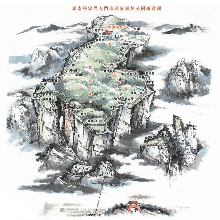 現(xiàn)在位置:張家界旅行社->交通指南->旅游地圖 -> 天門(mén)山國(guó)家森林公園游覽圖_天門(mén)山旅游圖