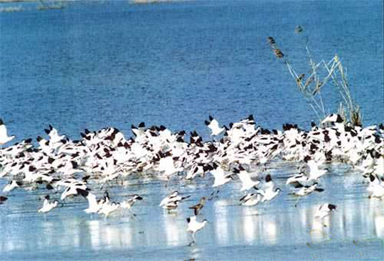 東洞庭湖是一個大湖泊型寬闊河道,它承納長江中上游和湖南的湘、資、沅、澧4條江河水量。湖泊的周圍是廣闊的沼澤和平原。 東洞庭湖是洞庭湖湖系中最大的湖泊,年平均過湖水量達3126億立方米。常年湖容量178億立方米,水深4-22m,最大水位落差為17。76m,ph6.8-8.6。它的地貌呈溝港縱橫的濕地景觀。土壤為湖沼土和河沼土。年平均氣溫為17℃,湖水丹頂鶴年平均溫度17.5℃,總降水量1200-1330mm,無霜期258-275天 該湖有豐富的沉水、浮水和挺水植物。記錄到131種水生植物,隸屬40科,75屬。常見的沉水植物包括苔草、黑藻、浮水植物有蓮、芡和浮萍;挺水植物有水燭和蘆葦?shù)。濕地周圍是稻田和其他農(nóng)作物。