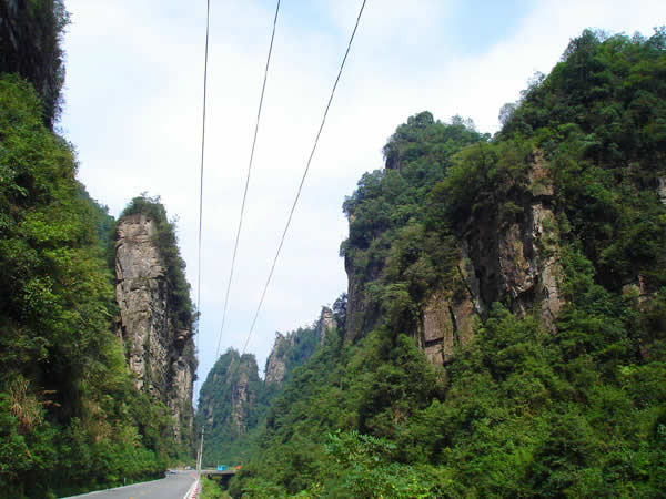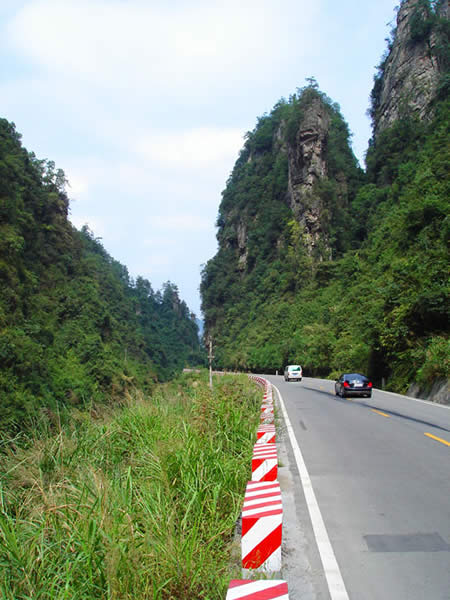 百丈峽圖片 百丈峽是武陵源風(fēng)景名勝區(qū)通往張家界市的公路貫通整個(gè)峽谷,因有堵高近百丈的石壁,直插云霄,不敢仰視,故而得名。據(jù)《慈利縣志》載,索溪峪右得百丈峽,峽長(zhǎng)三十公里……又相傳向王天子起義軍與官兵在此先后博殺一百仗,依此又名百仗峽。明代九永兵備胡桂芳,一生好游歷山川,來(lái)到百丈峽后題寫(xiě)了一首七言詩(shī):“峽高百丈洞云深,要識(shí)桃源此處尋;戎旅徐行風(fēng)雪緊,誰(shuí)將興盡類(lèi)山蔭!笨逃趰{內(nèi)道旁石壁上。