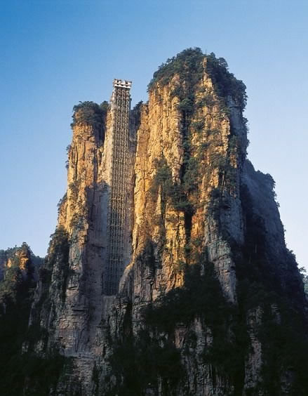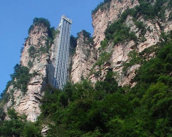 百龍?zhí)焯菀挥谑澜缱匀贿z產(chǎn)張家界武陵源風(fēng)景名勝區(qū),1999年9月動(dòng)工,2002年4月投入營(yíng)運(yùn),電梯的主要設(shè)備由德國(guó)知名電梯公司研究生產(chǎn),耗資人民幣1.8億元,被譽(yù)為“世界上最高、運(yùn)行速度最快、載重量最大的電梯”,也因此被載入吉尼斯世界紀(jì)錄。