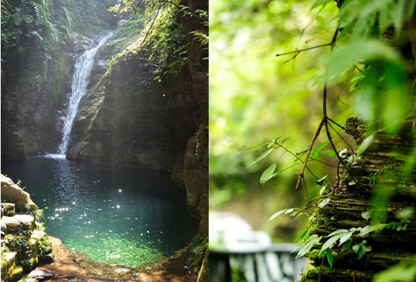 十八潭總名。稍作休憩,我們開始奔赴東線的景點(diǎn)。東線主要是以十八潭為主,下游有4潭:合潭、梳妝潭、魚潭、黑潭;中游有9潭:換衣潭、美人潭、石蛙潭、姊妹潭(3個(gè))、情侶潭(2個(gè))、二龍搶珠,上游有5潭:鬼谷神功(2個(gè))、幽潭、落銀潭(彩虹潭)、路邊潭。十八個(gè)潭深淺不一,淺則1米以上,深則4米左右,形狀各異,有的月牙形,有的豬腰狀,形狀不規(guī)則,石壁上水沖成潭,真是鬼谷神功,此處水質(zhì)細(xì)膩,加之綠林映襯,水色碧綠見底,猶如十八顆翡翠石鑲嵌在山林之間,涓涓溪流晶瑩剔透,飛流直下的瀑布,氣勢(shì)磅礴,蔚為壯觀, 下游的4潭,合潭、梳妝潭、魚潭、黑潭。合潭是仙女峽谷與十八潭的交匯處;梳妝潭的水清如明鏡,又因?yàn)樘秲蓚?cè)石頭的封閉,使這面鏡子靜止不動(dòng),很方便梳妝,照鏡子。在梳妝潭周圍,有一種植物屬于紅豆杉系列,它的形狀好似梳子,可以用來梳頭。魚潭可不能望文生義。魚潭,是在冬天的時(shí)候,所有的魚都聚集在這里過冬,除此之外,這個(gè)潭水淺見底,冬天魚苗聚集,是捕魚的好季節(jié)。黑潭,水深不見底,所以叫黑潭,F(xiàn)在已經(jīng)看不見梳妝潭、魚潭、黑潭了,你猜為什么?建水庫,建水上樂園,淹沒了。 斷魂石的傳說。三國(guó)時(shí)期,高氏和蕭氏一對(duì)夫妻春節(jié)忙活,遇上了天門垮眼,受余震襲擊,打死了丈夫蕭氏。高氏思念丈夫,淚哭不斷,結(jié)果摔死潭中。人們經(jīng)常還能聽到哭聲傳來,不敢單獨(dú)行走,需成群結(jié)隊(duì)。后人為了鎮(zhèn)邪,雕刻一條蜈蚣驅(qū)趕哭魂,多年后,蜈蚣成精,天上打雷,巖石發(fā)光,遭雷所劈,成了斷魂石。 和尚姥,也就是丹灶峰,天門十六峰之一。相傳此峰為仙人化身,赤松子曾在此煉丹,許多詩人在此留下了美妙的詩篇,明代葉守禮《丹灶峰》: 懸崖峭壁隔塵寰,上有仙人學(xué)煉丹。 煉得丹成鶴已去,獨(dú)留丹灶在峰巒。 意思是說,在這險(xiǎn)峻秀麗的山峰上,赤松子潛心煉丹,不受塵世干擾,身心沉醉于秀美的山間,沉溺于丹藥的煉制之中。作者很是羨慕那種與世隔絕的超脫,那種執(zhí)著于自我理想的瀟灑,你羨慕不羨慕? 竹林叢生。我們要學(xué)習(xí)竹子的精神,中空、謙卑;我們要學(xué)習(xí)竹子的精神,抱團(tuán)生長(zhǎng);我們要學(xué)習(xí)竹子的精神,破土而出,節(jié)節(jié)高。 向家塔。打造農(nóng)耕養(yǎng)生游的地方。種田、種菜、種花,農(nóng)家餐館。 爛泥巴根。爛泥巴根和馬桑樹是同科,是這里獨(dú)特的一種樹。馬桑樹亦稱“千年紅”、“馬鞍子”,屬落葉灌木,馬桑樹多枝叢生,一簇一簇的,枝葉像傘蓋,因此“馬桑樹兒搭燈臺(tái)”。春風(fēng)一吹,滿山的馬桑樹、爛泥巴根就吐翠滴綠,顯示出強(qiáng)勁的生命力。打油詩一首: 青青枝條四方走, 肥肥大葉落上頭, 身在路邊無人問, 冬去春來樂悠悠。 秋天死亡,春天長(zhǎng)勢(shì)更加茂盛,它的新生是通過死亡實(shí)現(xiàn)的。山川如此,植物也是如此,這里的一草一木無不透露著道家那種齊生死、等貴賤的精神。 這叫“常道”亭,“道可道,非常道”,據(jù)說是白狐與劉海相遇的地方。吊橋。 十八潭各具特色。 中游有9潭。第五潭叫換衣潭。巖石聳立,霧氣氤氳,巖壁上布滿水汽,猶如雨下。又因過道狹窄,行人需彎腰通過,未免雨水打濕衣裳,在此就要脫下身上衣物,通過后在第六潭再穿上。因此第六潭又叫美人潭,很幽深神秘的。第七潭叫石蛙潭,水淺,又比較平穩(wěn)、安全,春天產(chǎn)籽。余音回響,猶如蛙鳴,給人“聽取蛙聲一片”的錯(cuò)覺。 對(duì)面巖壁叫“臘肉鋪”,那條自上而下的溪流叫“酒長(zhǎng)流”,客人來了,咱土家人熱情,臘肉下炕,苞谷燒,喝兩口! 第八潭第九潭叫情侶潭,比較隱蔽,他倆靜悄悄地談著情話,我們快走,不要打攪他們。 第十潭、十一潭、十二潭叫姊妹潭。下面那個(gè),水淺淺的,溫溫的,是幺妹潭,中間那個(gè)是二哥潭,上面那個(gè)是大哥潭。 潭的旁邊有珍稀植物馬蘭花,馬蘭花又名蝴蝶花、蝴蝶蘭,為多年生宿根草本花卉,根莖短粗,肥壯;ù笮缕,花色絢麗,鮮艷奪目;ㄓ兴{(lán)、白、黃、雪青等色;ㄆ5-6個(gè)月,每次花可開花7-10天,頗耐觀賞。馬蘭花在我國(guó)栽培已有2000多年的歷史,目前歐、亞、非3洲均有分布,品種極多,難以計(jì)數(shù)。此花按植株高度不同可分3種類型:矮株型僅18-25厘米,中株型高25-70厘米,高株型可高達(dá)120厘米。馬蘭花喜陽光,適栽于背風(fēng)向砂質(zhì)土壤中。 馬蘭開花的童謠。他們?nèi)⒚眯r(shí)候情感深厚,常常一起跳皮筋。大家會(huì)跳嗎?會(huì)唱嗎? 小汽車,滴滴滴,馬蘭開花二十一, 二五六二五七,二八二九三十一, 三五六三五七,三八三九四十一, 四五六四五七,四八四九五十一, 五五六五五七,五八五九六十一 。…… 還有紅豆杉,像梳頭的篦子,叫“篦子三尖杉”。還有蘭心草,中草藥,空中飄來蘭花的香氣,山谷中峭壁的蘭花,如芳芳人品善良高雅。蘭花如人品有宜人的香氣,蘭花有撩人的幽香,任何花卉的香氣都不能與蘭花比。這幽香時(shí)隱時(shí)現(xiàn),時(shí)濃時(shí)淡,時(shí)遠(yuǎn)時(shí)近。飄蕩在老道灣山谷中,給人清新和愉快的感受。 蘇轍有詩:“谷深不見蘭生處,追逐微風(fēng)偶得之”。 還有大葉榕、玉葉金花、秋海棠、臘蓮繡球、四字馬蘭、紅楓,秋天來臨,看!漫山紅遍,層林盡