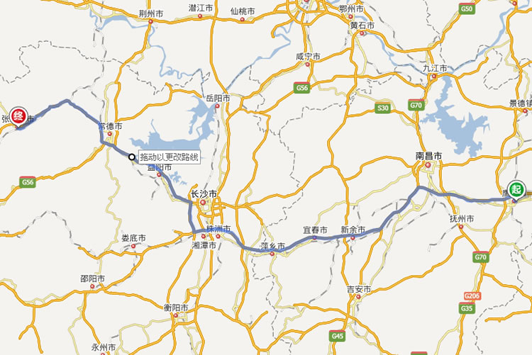 左右,沿途經過鷹潭——新余——宜春——萍鄉(xiāng)——株洲——長沙——益陽——常德——慈利——張家界市。