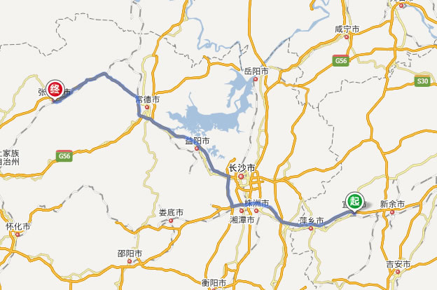 左右,沿途經過宜春——萍鄉(xiāng)——株洲——長沙——益陽——常德——慈利——張家界市。