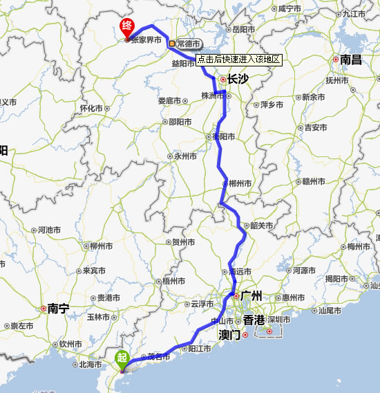 湛江去張家界自駕車自助游線路圖全程高速):