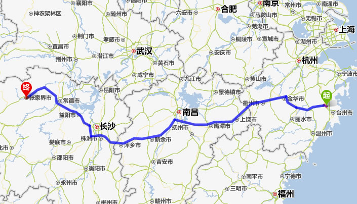現(xiàn)在位置:張家界旅行社->交通指南->自駕車路線 -> 臨海到張家界旅游自駕車線路,臨海去張家界自己開車要多長時間,有多少公里