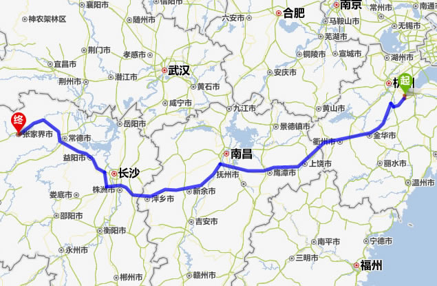 紹興去張家界自駕車自助游線路圖全程高速):
