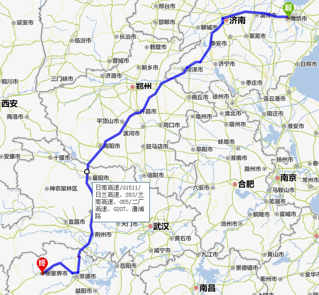 現(xiàn)在位置:張家界旅行社->交通指南->自駕車路線 -> 濰坊到張家界旅游自駕車線路,濰坊去張家界自己開車要多長時間,有多少公里
