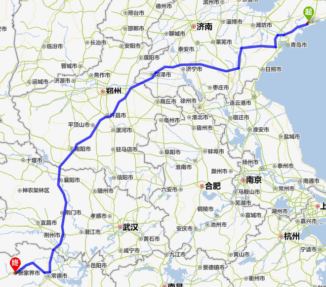 海陽(yáng)市到張家界自駕車(chē)旅游線路(距離最短)