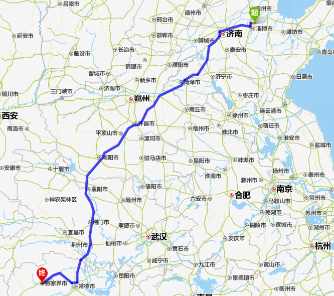 桓臺(tái)縣去張家界自駕車(chē)自助游線(xiàn)路圖全程高速):