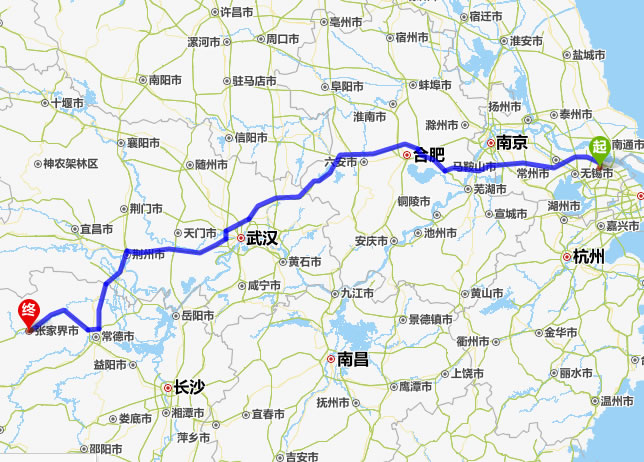 常熟去張家界自駕車自助游線路圖全程高速):