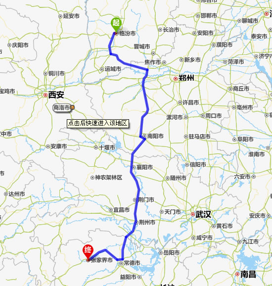 臨汾去張家界自駕車(chē)自助游線(xiàn)路圖全程高速):