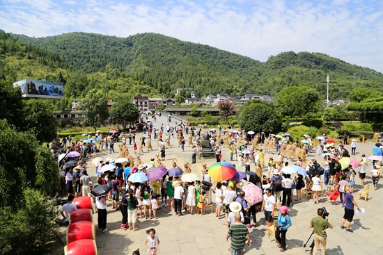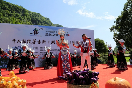 7月29日上午9點30分,由張家界市人民政府主辦,張家界市委宣傳部、市旅游和外事僑務委員會、市文體廣電新聞出版局、武陵源區(qū)人民政府承辦,黃龍洞景區(qū)協(xié)辦的“絕版張家界,最炫民族風”張家界民俗活動月第三場活動在黃龍洞景區(qū)啟動,F(xiàn)場以土家人慶祝豐收的鼓舞拉開序幕,土家鼓舞歡悅的節(jié)奏,夸張的舞姿開場就吸引了幾千游人和當?shù)厝擞^看。草根夫妻檔歌手,張家界“山水組合許勇、舒維亮麗的服飾,野性的嗓音……”以一首《我在高山唱》歌曲,征服現(xiàn)場游客,贏得雷鳴般的叫好聲。