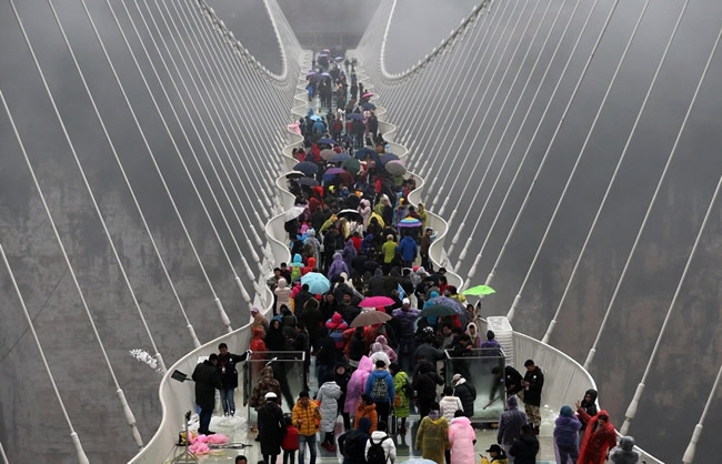 現(xiàn)在位置:張家界旅行社->旅游資訊 -> 張家界大峽谷玻璃橋上演耐寒耐熱大挑戰(zhàn)